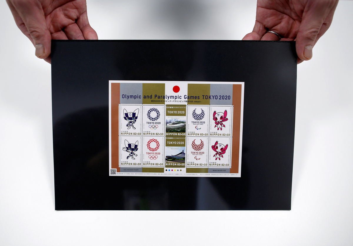 One million sheets of 10 stamps are on sale, priced at 920 yen ($8.26), which includes a donation of 100 yen towards preparations for the Games.