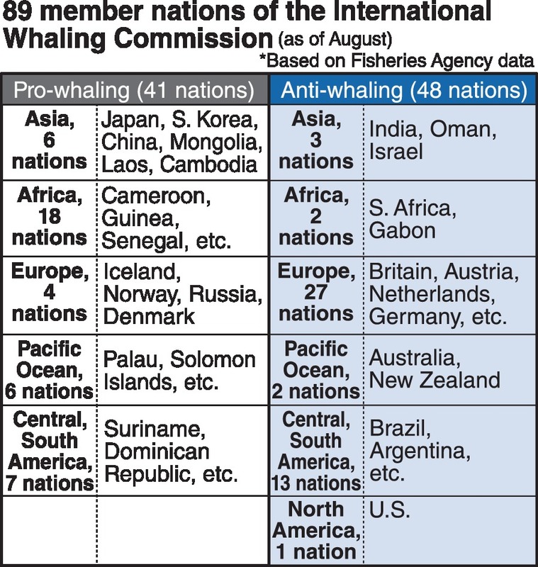 Their power in international negotiations contrasts with that of the many African and Asian nations that support Japan's stance on the effective use of resources.
