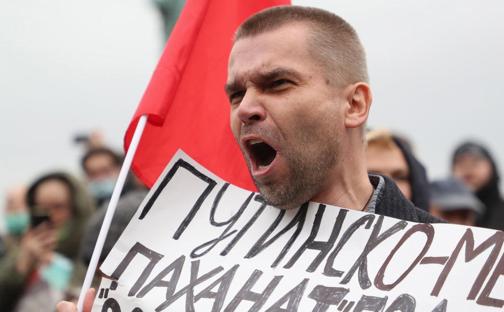 Towards the end of the rally there were calls to free political prisoners, and a few pro-Navalny chants broke out: “Russia will be free”, “Putin is a thief”, “Russia without Putin.”