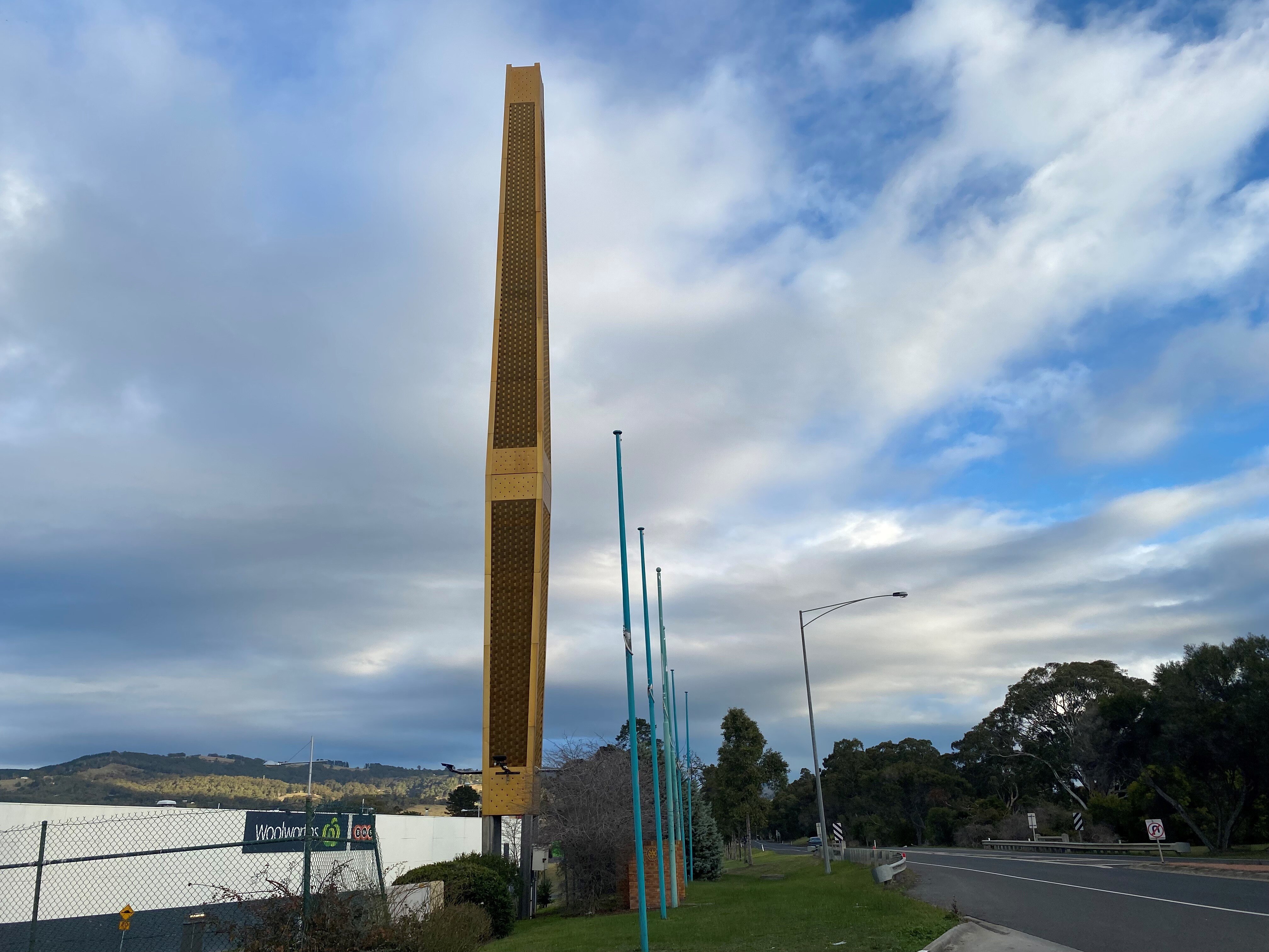 Across the mountain ranges, the Big Cigarette, formerly a chimney in a tobacco plant, was removed in Myrtleford.