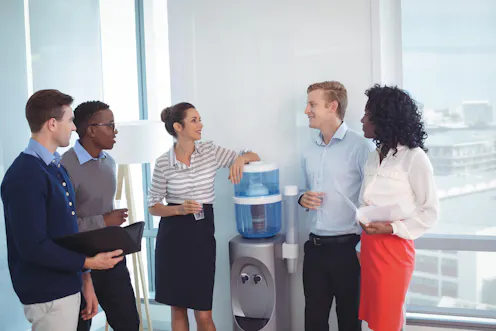 It’s more likely that the real virtual water cooler will pop up outside of the official channels. And that is because, in highly planned organisations, chance and the sudden surprises become valuable – a kind of cultural good – for the very reason that no one from higher up designed or planned them. Spontaneous, informal communication is clearly valuable for business, but it takes place in liminal spaces.