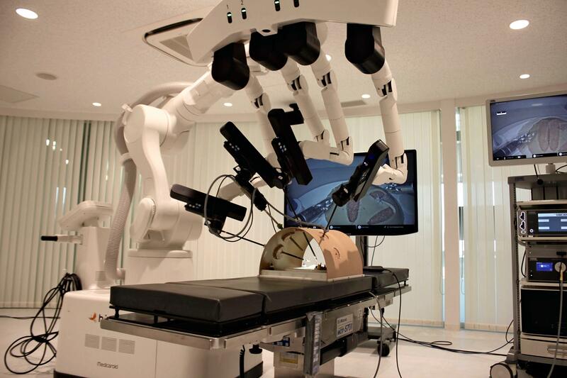 Operators can remotely manipulate the robot's four arms, which are each equipped with forceps and endoscopic cameras, giving doctors a three-dimensional view during operations. Kobe-based firm Medicaroid Corp. developed the robot.
