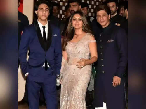 <p>SRK, Gauri and their son Aryan attended the star-studded engagement ceremony of Mukesh Ambani's daughter Shloka Ambani. The trio made sure to pose for the paparazzi as they arrived at the venue. </p><p><br /></p><p><sub>Photo: Instagram</sub></p>Amid Aryan Khan's arrest, these pictures of him with father Shah Rukh Khan go viral on the internet