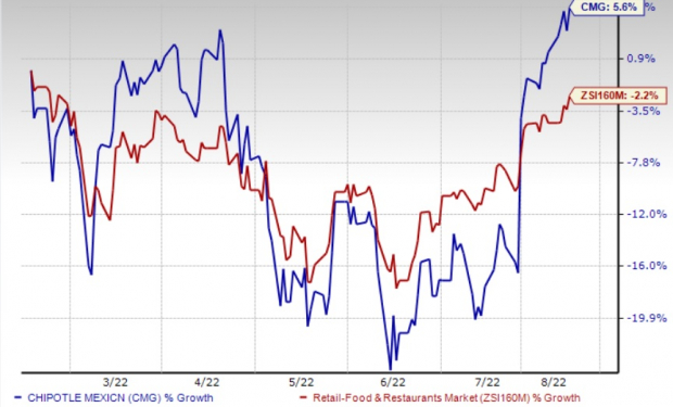 Chipotle Mexican Grill, Inc. (NYSE:CMG) is benefiting from comps growth, strength in digital sales, rise in menu prices and new restaurant openings. In the past six months, shares of the company have gained 5.6%, against the industry's decline of 2.2%. However, supply chain challenges, elevated wage inflation and expenses associated with new menus remain headwinds. Let's delve deeper.