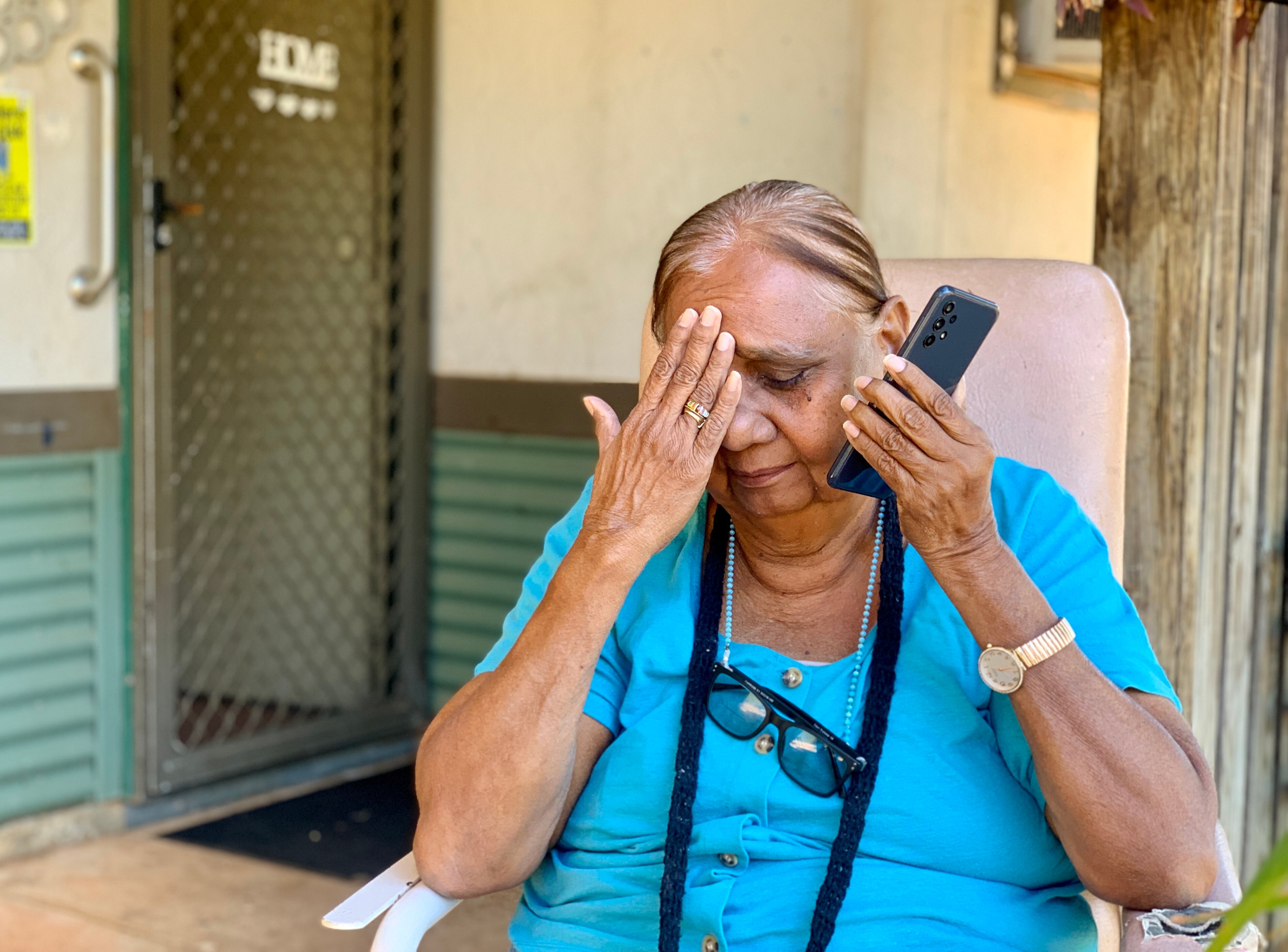After the call, Glenys is visibly relieved. Her grandson is safe for now.