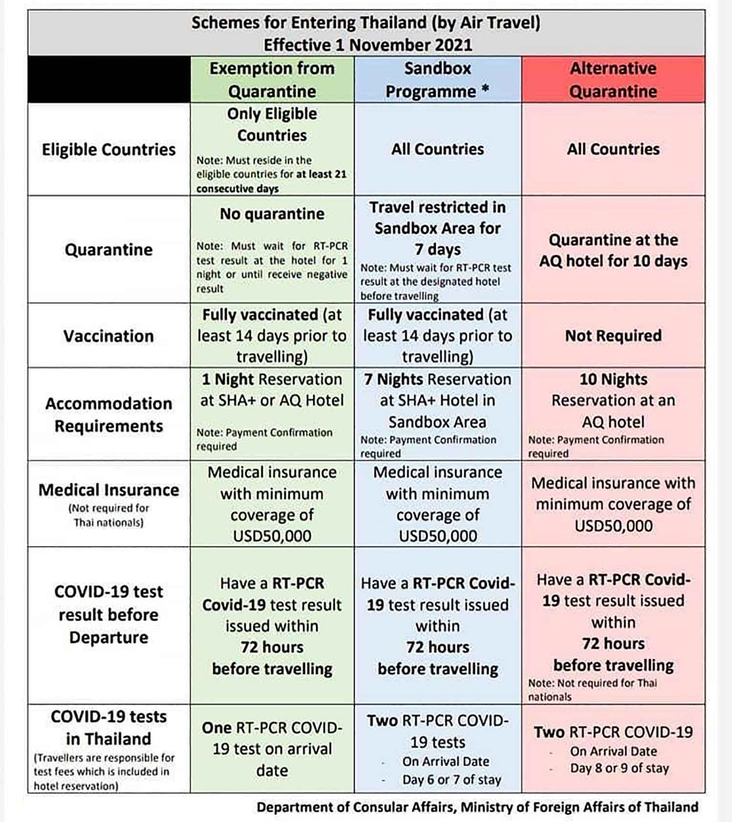 Arrivals by other kinds of flights must enter "sandbox" programmes in, for example, Phuket, Koh Samui, Koh Phangnga and Krabi.