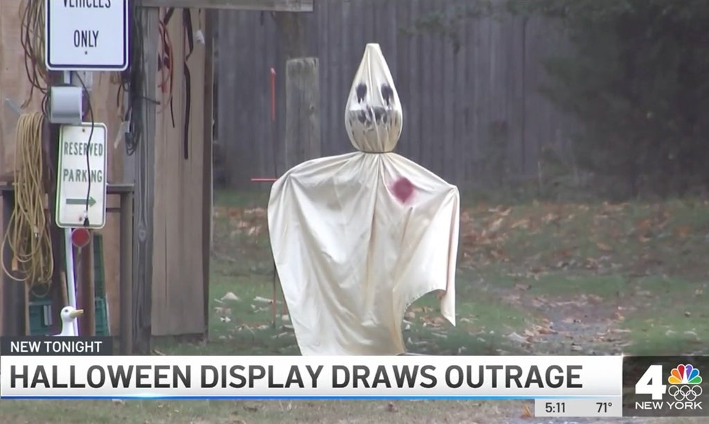 A Confederate Halloween display featuring Ku Klux Klan-like figures has sparked a community backlash in New Jersey.