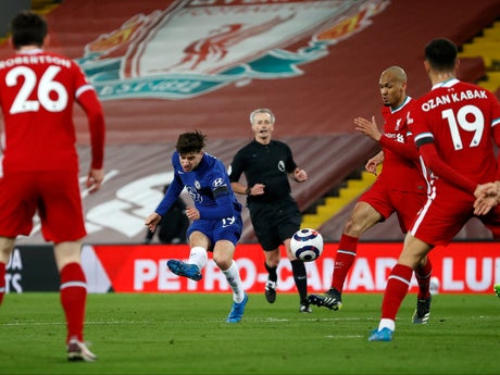 Fabinho headed wide from the first corner Liverpool won, but Chelsea once again displayed more verve in their offensive play. Alisson parried Ben Chilwell’s shot, which fell to Hakim Ziyech. His effort was darting in towards the bottom right, but Fabinho cleared off the line.