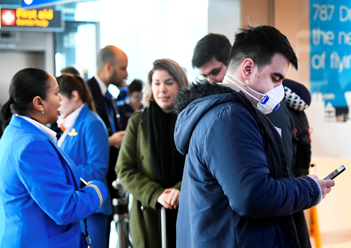 Travelers wait to be informed in the departure hall at the KLM Service Desk, as the travel ban for European countries announced by U.S. President Donald Trump has major consequences for the world of travel and travelers that have just arrived from U.S., in Schiphol, Netherlands March 12, 2020. REUTERS/Piroschka van de Wouw