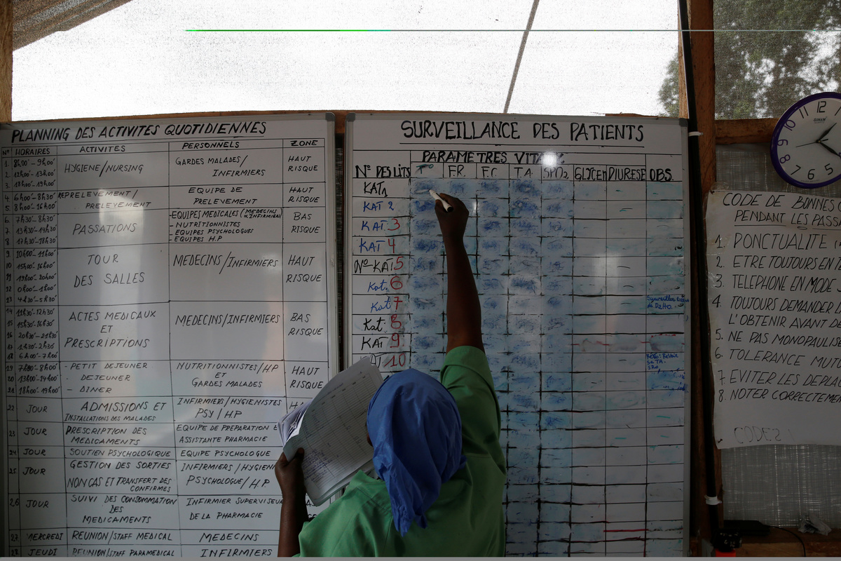 "We didn't have much equipment in this facility," said Mungwayitheka, who now works at an Ebola treatment center in Beni he credits with saving his life. "When we received patients, we just had to put on protective gloves. After caring for them, we had to remove the gloves, but the patient had touched almost all the doors."