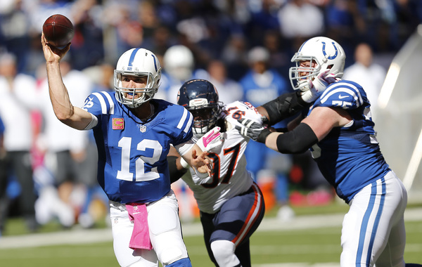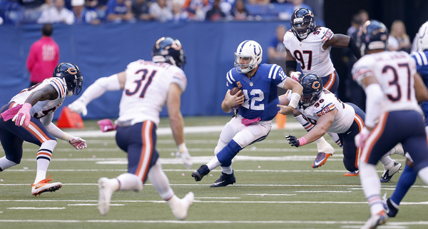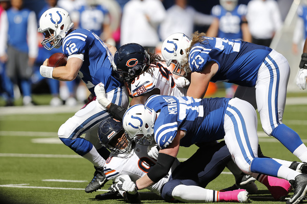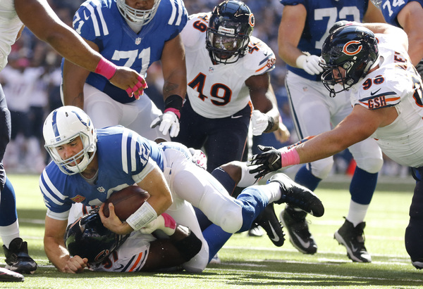 The good news: The Colts have been woeful in pass protection all season long, and the Bears defense found ways to take advantage, sacking quarterback Andrew Luck five times and hitting him seven others. Willie Young recorded three sacks on Luck, active and aggressive for much of the afternoon.