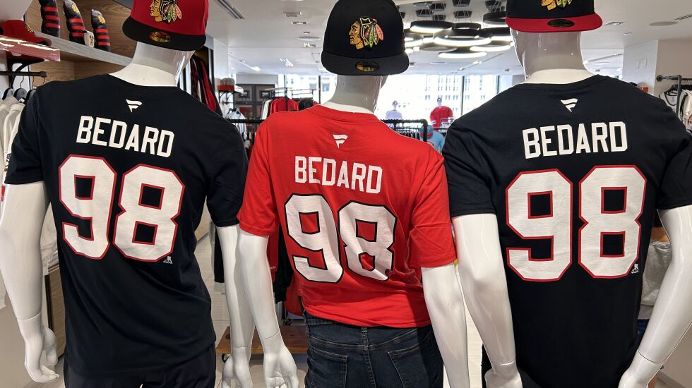Seth Jones gets one display. A few Jonathan Toews and Patrick Kane jerseys still are hanging on other racks, mostly on sale. Other than that, however, the Blackhawks Store has become the Bedard Store.