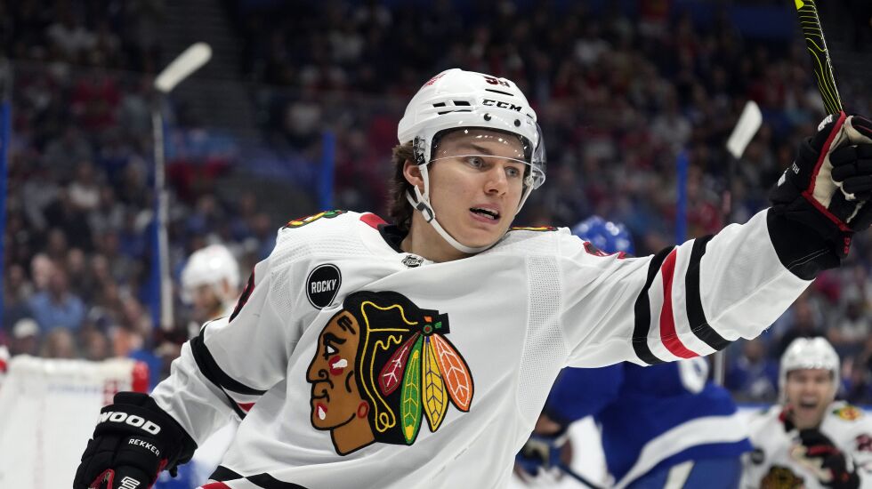 Kevin Korchinski earned his first career NHL goal thanks to a friendly ricochet off a Lightning skate, whereas Johnson and Perry’s goals were both their firsts against their former team. Goalie Petr Mrazek was stellar again, too, stopping 30 of 33 shots and helping the Hawks survive some sloppy defensive coverage sequences.