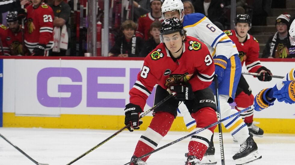 That chemistry translated into a goal late in the second period, when Reichel poked the puck away from Sabres forward Casey Middelstadt in the Hawks’ defensive zone, springing Bedard on a one-man rush that led to a rebound goal by Kurashev.