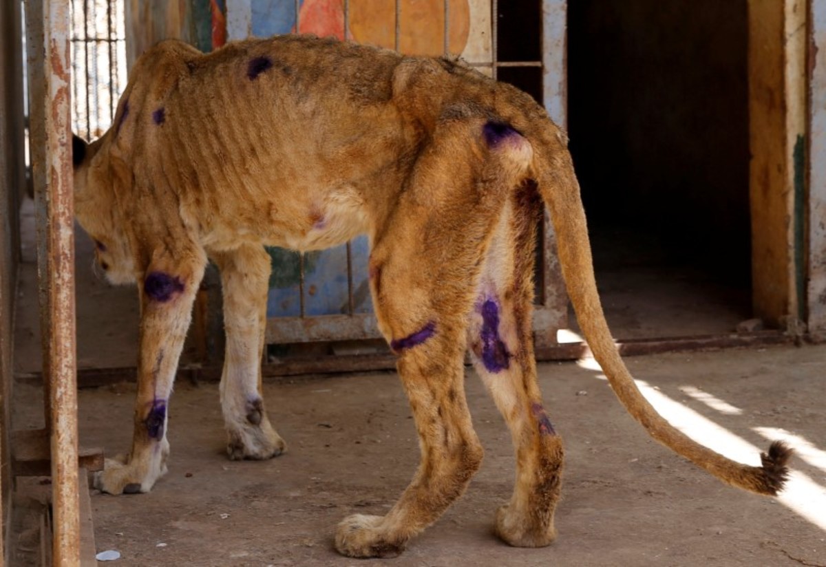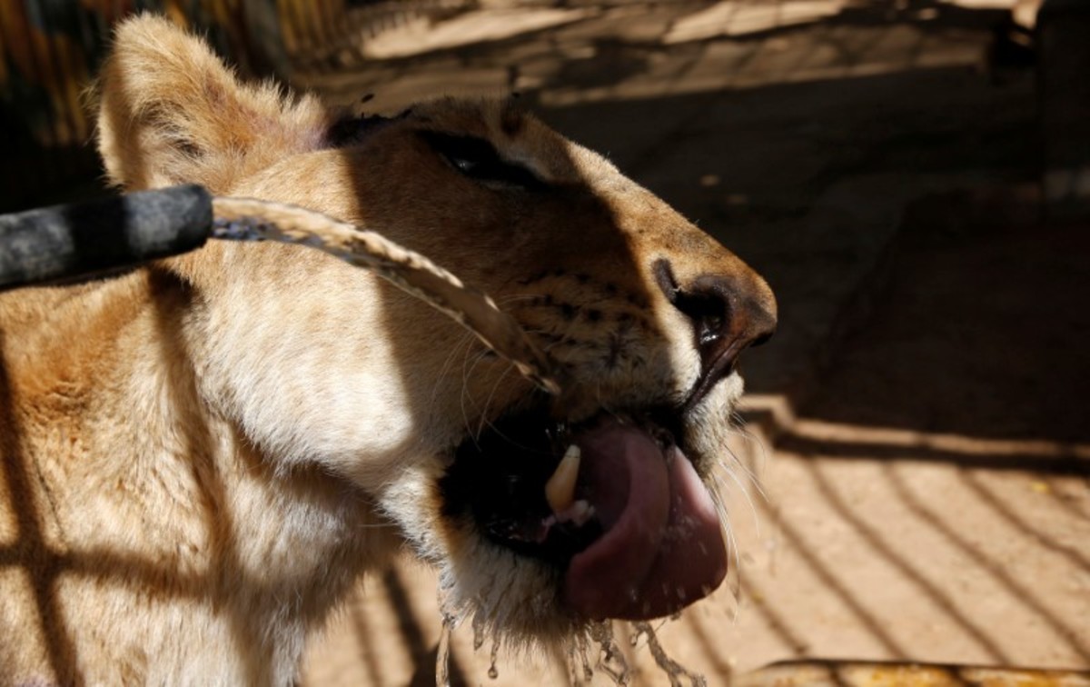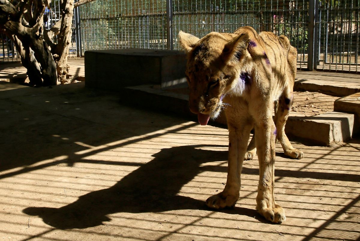 Workers assist a wildlife veterinarian as he takes samples from a malnourished lion inside its cage at the Al-Qureshi Park in Khartoum, Sudan January 22, 2020. REUTERS/Mohamed Nureldin AbdallahA wildlife veterinarian takes samples from a malnourished lion inside its cage at the Al-Qureshi Park in Khartoum, Sudan January 22, 2020. REUTERS/Mohamed Nureldin AbdallahA wildlife veterinarian takes samples from a malnourished lion inside its cage at the Al-Qureshi Park in Khartoum, Sudan January 22, 2020. REUTERS/Mohamed Nureldin AbdallahA malnourished lion rests inside its cage at the Al-Qureshi Park in Khartoum, Sudan January 22, 2020. REUTERS/Mohamed Nureldin AbdallahA malnourished lion stands inside its cage at the Al-Qureshi Park in Khartoum, Sudan January 22, 2020. REUTERS/Mohamed Nureldin AbdallahA malnourished lion stands inside its cage at the Al-Qureshi Park in Khartoum, Sudan January 22, 2020. REUTERS/Mohamed Nureldin AbdallahA malnourished lion walks inside its cage at the Al-Qureshi Park in Khartoum, Sudan January 22, 2020. REUTERS/Mohamed Nureldin AbdallahA malnourished lion walks inside its cage at the Al-Qureshi Park in Khartoum, Sudan January 22, 2020. REUTERS/Mohamed Nureldin Abdallah