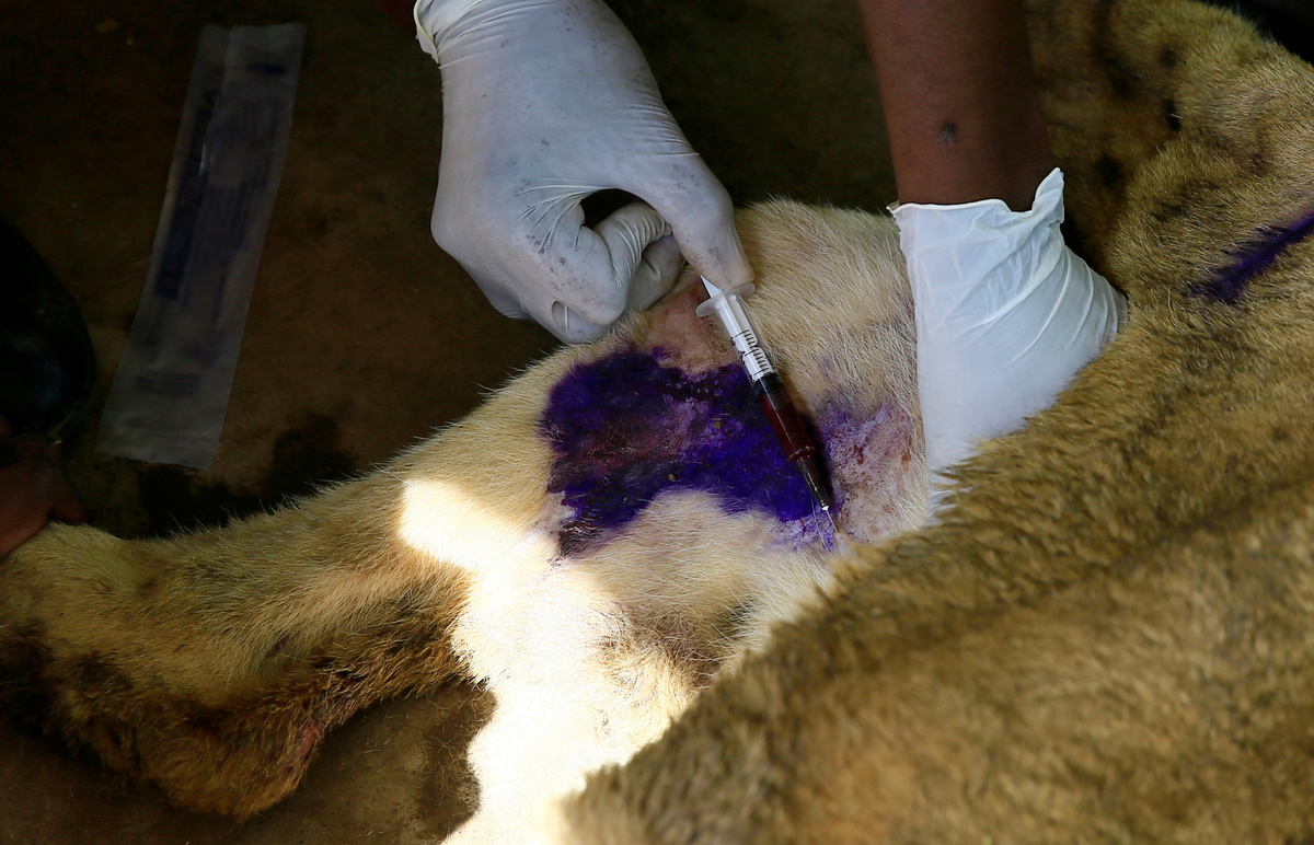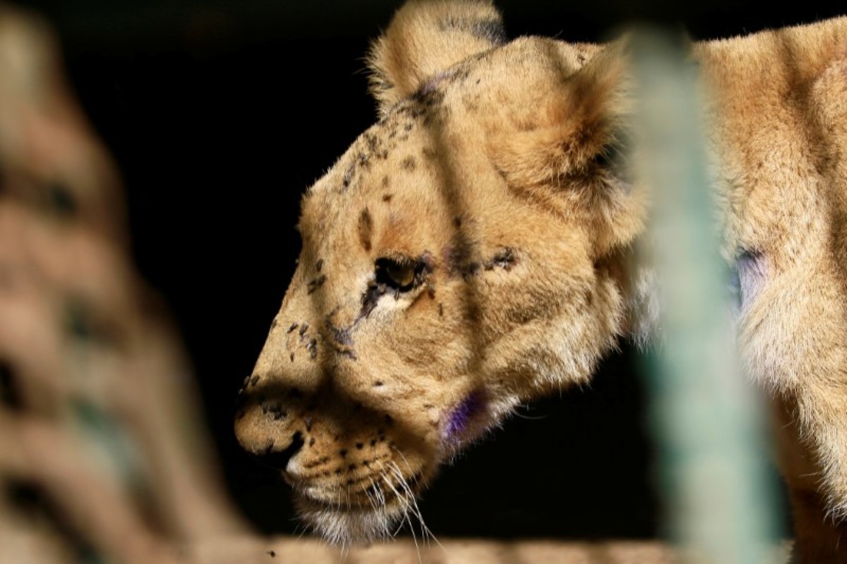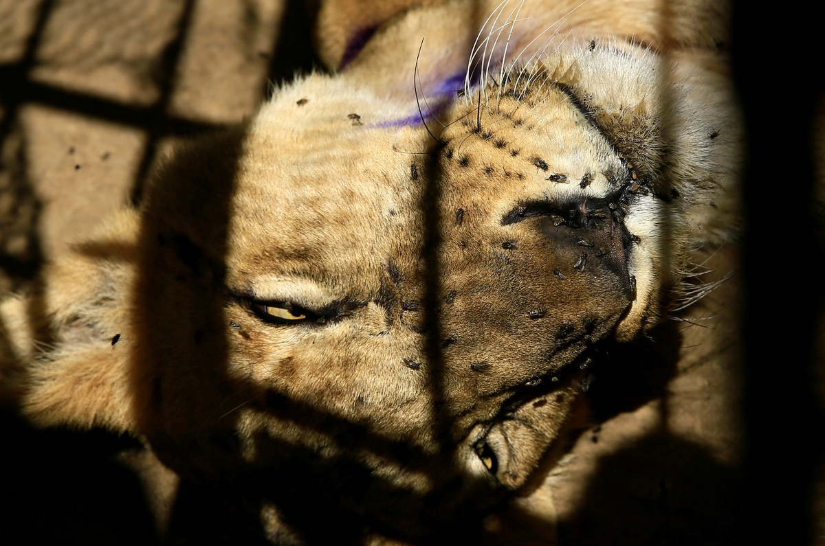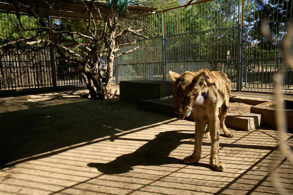 Workers assist a wildlife veterinarian as he takes samples from a malnourished lion inside its cage at the Al-Qureshi Park in Khartoum, Sudan January 22, 2020. REUTERS/Mohamed Nureldin AbdallahA wildlife veterinarian takes samples from a malnourished lion inside its cage at the Al-Qureshi Park in Khartoum, Sudan January 22, 2020. REUTERS/Mohamed Nureldin AbdallahA wildlife veterinarian takes samples from a malnourished lion inside its cage at the Al-Qureshi Park in Khartoum, Sudan January 22, 2020. REUTERS/Mohamed Nureldin AbdallahA malnourished lion rests inside its cage at the Al-Qureshi Park in Khartoum, Sudan January 22, 2020. REUTERS/Mohamed Nureldin AbdallahA malnourished lion stands inside its cage at the Al-Qureshi Park in Khartoum, Sudan January 22, 2020. REUTERS/Mohamed Nureldin AbdallahA malnourished lion stands inside its cage at the Al-Qureshi Park in Khartoum, Sudan January 22, 2020. REUTERS/Mohamed Nureldin AbdallahA malnourished lion walks inside its cage at the Al-Qureshi Park in Khartoum, Sudan January 22, 2020. REUTERS/Mohamed Nureldin AbdallahA malnourished lion walks inside its cage at the Al-Qureshi Park in Khartoum, Sudan January 22, 2020. REUTERS/Mohamed Nureldin Abdallah