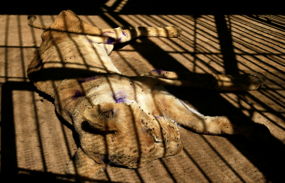 A malnourished lion rests inside its cage at the Al-Qureshi Park in Khartoum, Sudan January 22, 2020. REUTERS/Mohamed Nureldin Abdallah