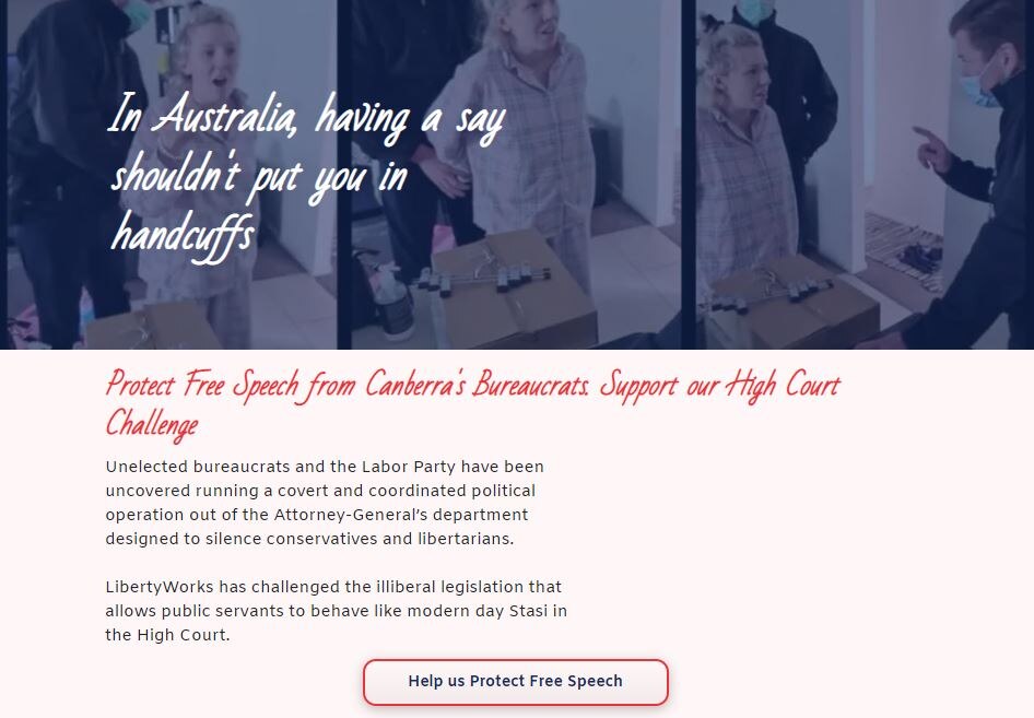 "Unelected bureaucrats and the Labor Party have been uncovered running a covert and coordinated political operation out of the Attorney-General's Department designed to silence conservatives and libertarians," the website said.