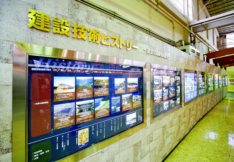 The Construction Technology Pavilion illustrates the history of infrastructure development through construction machines, with exhibitions ranging from those offering basic information about construction technology to the latest technologies.