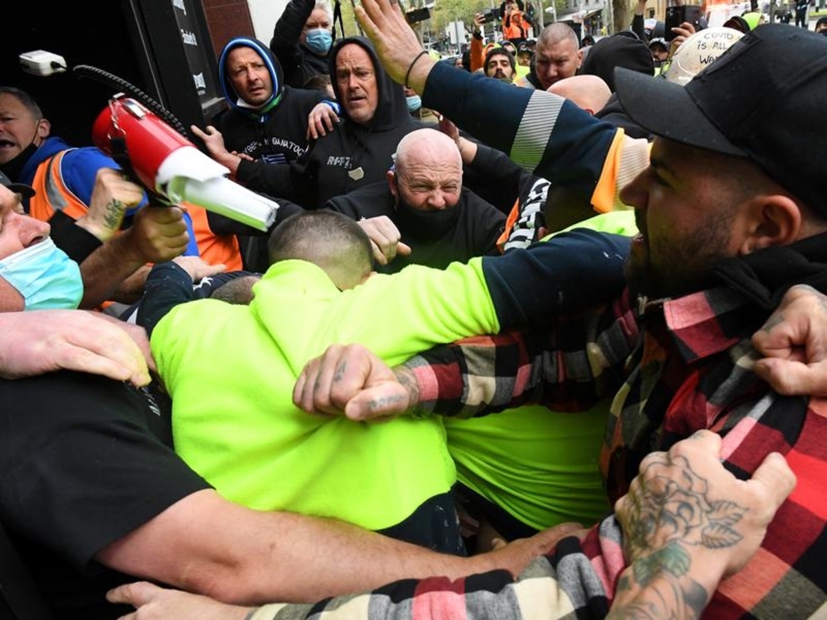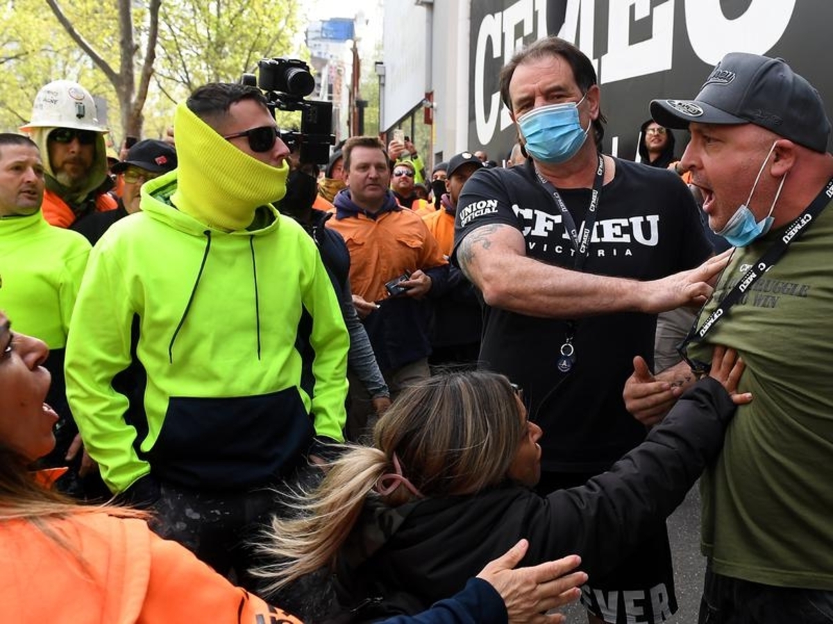 It is unclear whether all of those protesting are construction workers, after a message on the Melbourne Freedom Rally Telegram group encouraged anti-lockdown protesters to join them.