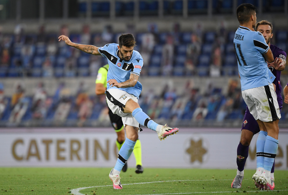 Soccer Football - Serie A - Lazio v Fiorentina - Stadio Olimpico, Rome, Italy - June 27, 2020 Lazio's Luis Alberto celebrates scoring their second goal, as play resumes behind closed doors following the outbreak of the coronavirus disease (COVID-19) REUTERS/Alberto LingriaSoccer Football - Serie A - Lazio v Fiorentina - Stadio Olimpico, Rome, Italy - June 27, 2020 Lazio's Luis Alberto scores their second goal, as play resumes behind closed doors following the outbreak of the coronavirus disease (COVID-19) REUTERS/Alberto LingriaSoccer Football - Serie A - Lazio v Fiorentina - Stadio Olimpico, Rome, Italy - June 27, 2020 Lazio's Patric celebrates after the match with teammates, as play resumes behind closed doors following the outbreak of the coronavirus disease (COVID-19) REUTERS/Alberto LingriaSoccer Football - Serie A - Lazio v Fiorentina - Stadio Olimpico, Rome, Italy - June 27, 2020 Lazio's Luis Alberto scores their second goal, as play resumes behind closed doors following the outbreak of the coronavirus disease (COVID-19) REUTERS/Alberto LingriaSoccer Football - Serie A - Lazio v Fiorentina - Stadio Olimpico, Rome, Italy - June 27, 2020 Fiorentina's Frank Ribery celebrates scoring their first goal with teammates, as play resumes behind closed doors following the outbreak of the coronavirus disease (COVID-19) REUTERS/Alberto LingriaSoccer Football - Serie A - Lazio v Fiorentina - Stadio Olimpico, Rome, Italy - June 27, 2020 Fiorentina's Patrick Cutrone in action with Lazio's Francesco Acerbi, as play resumes behind closed doors following the outbreak of the coronavirus disease (COVID-19) REUTERS/Alberto Lingria