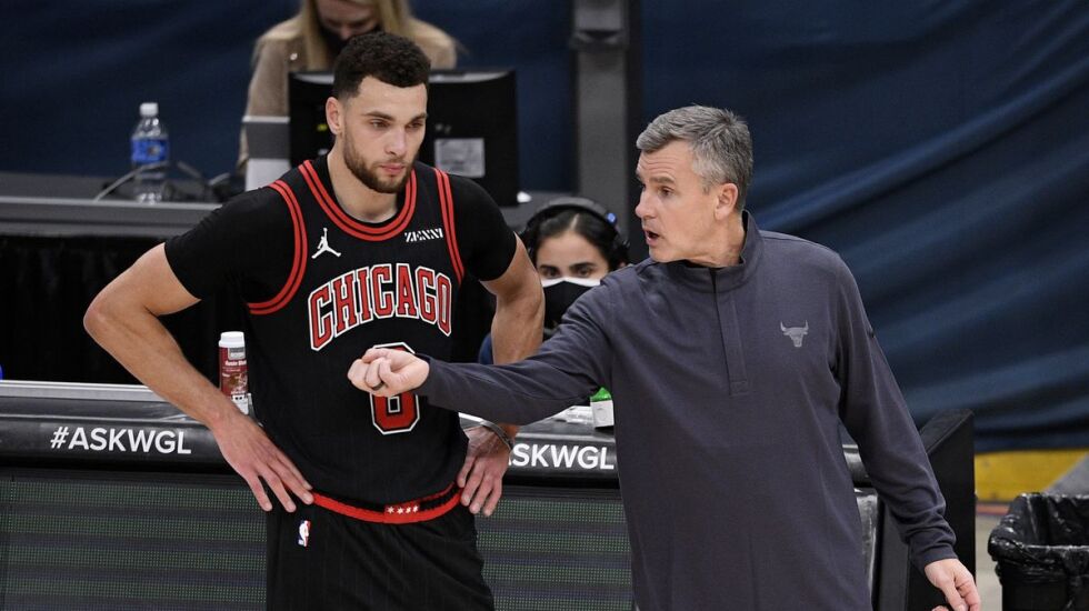 “It’s just the way it is,’’ Donovan said. “I feel like it’s my responsibility and my job that whoever the next person is that has to step in for Zach, we’ve got to play to a certain style on both ends of the floor. Listen, you’re talking about a guy [in LaVine] that gets 27 points per game, shoots over 40% from three and is an NBA All-Star. I can’t ask any of those guys to replace him, but regardless of if he’s there or not, can we play how we know we need to play to put ourselves in the best position to play with the best teams?’’
