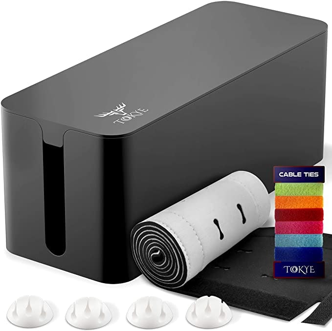You know that collection of wires that spills out from behind your computer and TV? Well, this kit will tidy that right up — including the power strip. You can drop the power strip into the box and run the main cord through the side opening, while the other cords come through the opposite side. You can also use the included cable ties and sleeves to corral the wires. The included cable clips make it easy to guide the cords so they go where you want them.