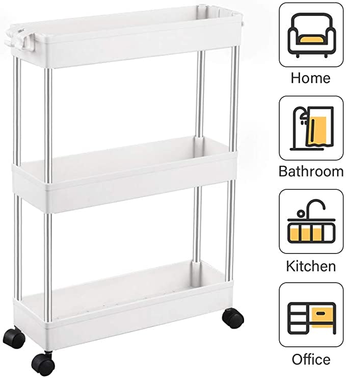 This rolling shelf cart is small enough to sneak into just about any corner or crevice in not only your kitchen, but also your bathroom, laundry room, or closet. It'll help you organize toiletries, kitchen supplies, or whatever clutter you've got into a compact, out-of-the-way spot. It even comes with clips so you can hang a washcloth or sponge from it. The unit is less than six inches deep and comes in two colors: black and white.