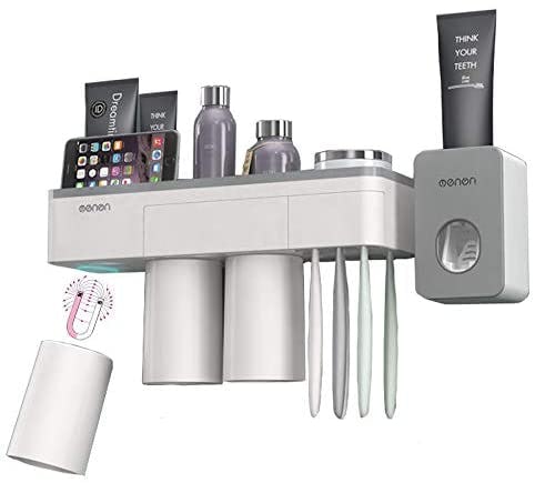 If clutter has begun taking over your bathroom, it's time to get your essentials organized and mounted to the wall. Thankfully, this slick wall-mounted shelf has a place for everything. The platform on top serves as a place to keep your hair products, lotions, or cosmetics — and even your phone. There's also a shelf that closes to help keep your toothbrush bristles and shaving razors shielded, as well as a toothpaste dispenser that gives you the same amount each time.