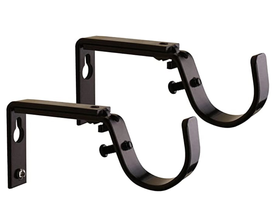 Hanging the curtains so that they're a couple of inches away from the window can make it easier to open and close them. It also gives you a small space between the curtain and the windowsill or blinds — this hanger hardware can help you create that effect. They're easy to install, adjustable, sturdy, and available in five different shades.