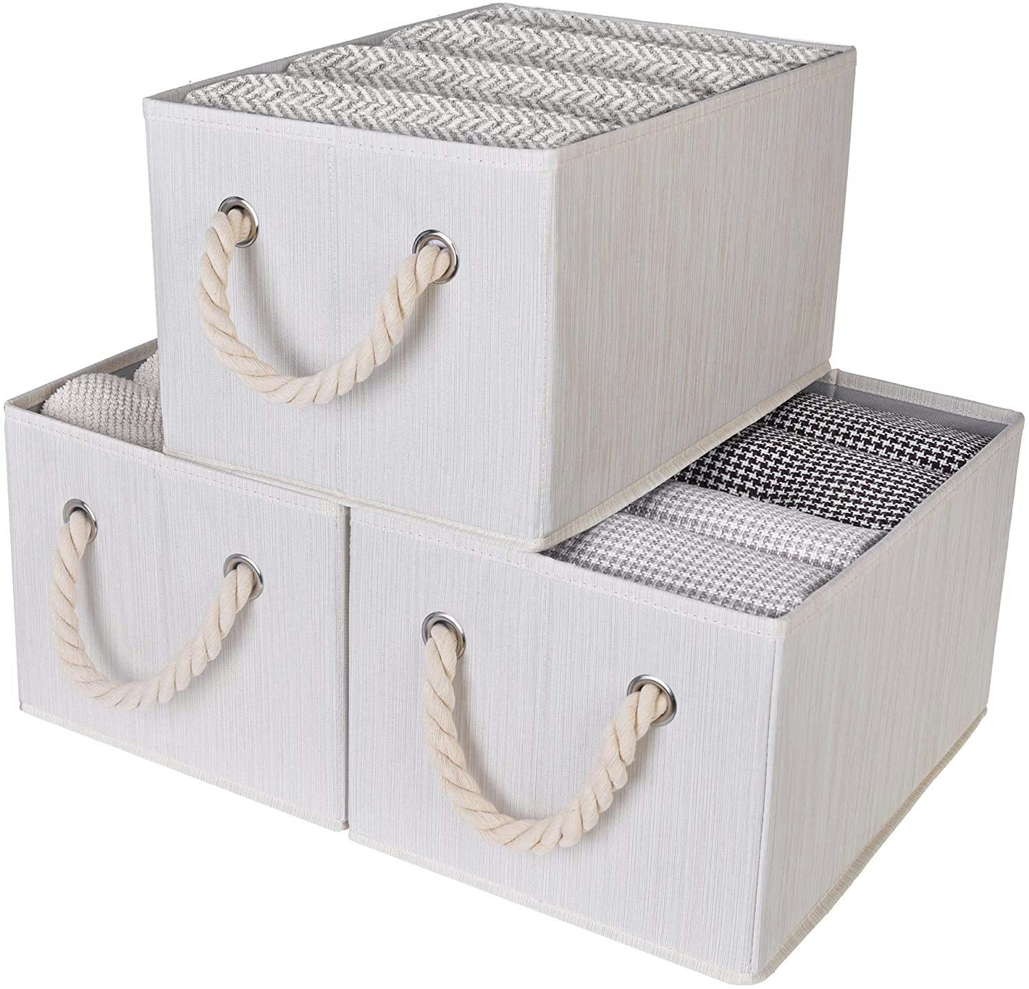 If you want to organize your closet with new shelves and cubbies, it's easy to spend a small fortune. This set of baskets is affordable, and they're easy to fit in your closet or cube system. The polyester-cotton baskets are available in three sizes — medium, large, and jumbo — and have sturdy rope handles. They're also collapsable for easy storage when not in use.