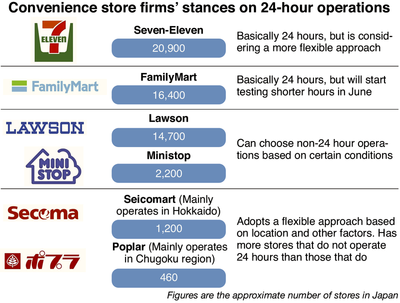 These moves were prompted partly by the Economy, Trade and Industry Ministry's instructions for operators of convenience store chains to give due consideration to franchises that have been suffering labor shortages.