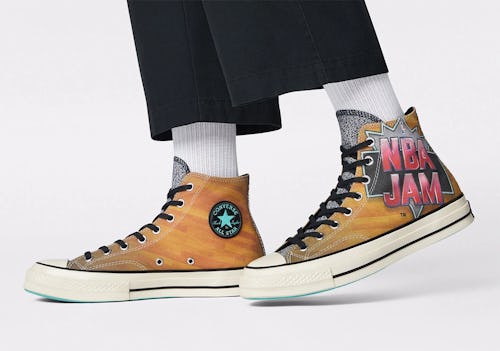 Sticking with shoes as classic as the game itself, Converse plans to incorporate NBA Jam references into its Chuck 70 and Pro Leather sneakers. Popular game phrases, pixelated graphics, and basketball motifs cover both of the thematic shoes.