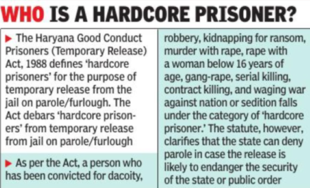 CHANDIGARH: In a major respite to Gurmeet Ram Rahim, the controversial chief of Dera Sacha Sauda who is undergoing imprisonment in Rohtak’s Sunaria jail after being convicted for two murders and two rapes, the Punjab and Haryana high court has held that he does not fall in the category of “hardcore prisoners” for the purpose of release on parole or furlough.