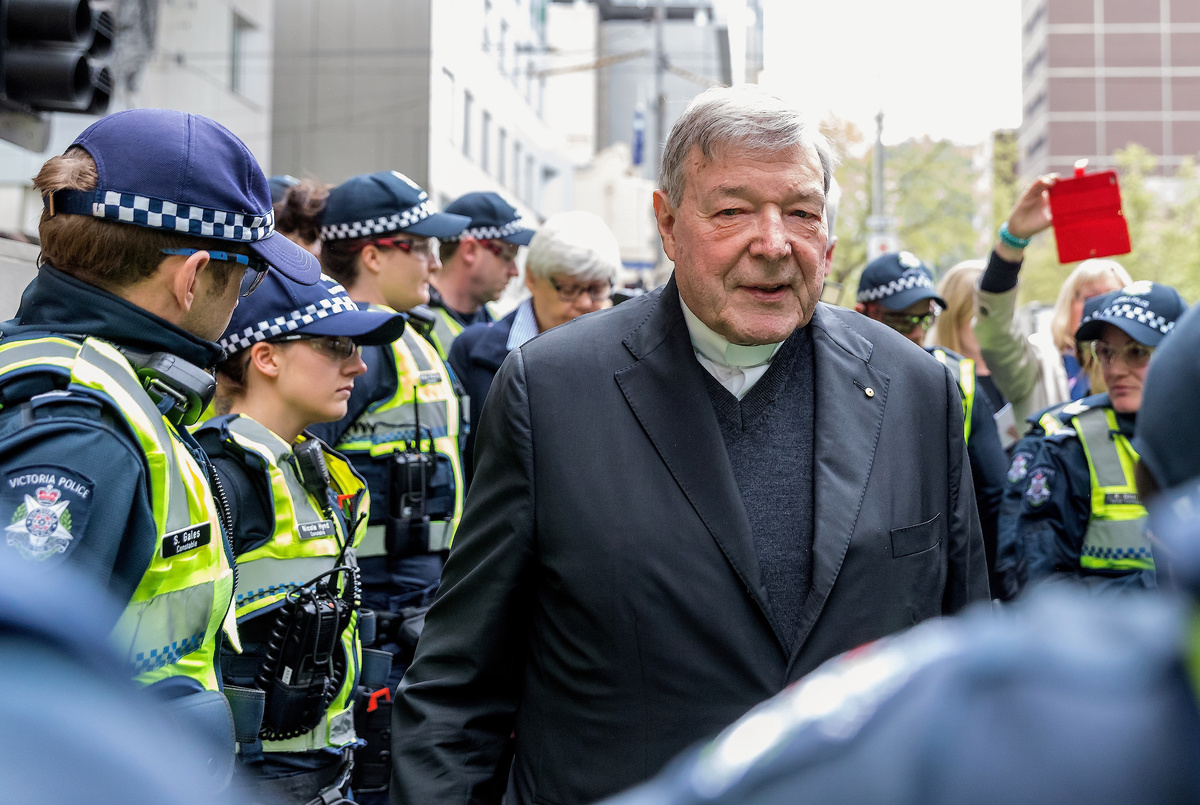 Pell was heckled as he arrived at court and sat in the dock flanked by police officers. His conviction dominated media for a second day, with banner headlines in Australian newspapers such as "CARDINAL SIN", "CARDINAL TO CONVICTION" and "GUILTY".