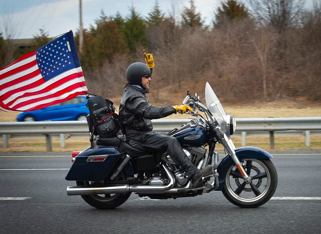 A video posted on Twitter showed trucks passing under a large American flag hoisted in the air by two cranes. Supporters stood along a road waving as the drivers left.
