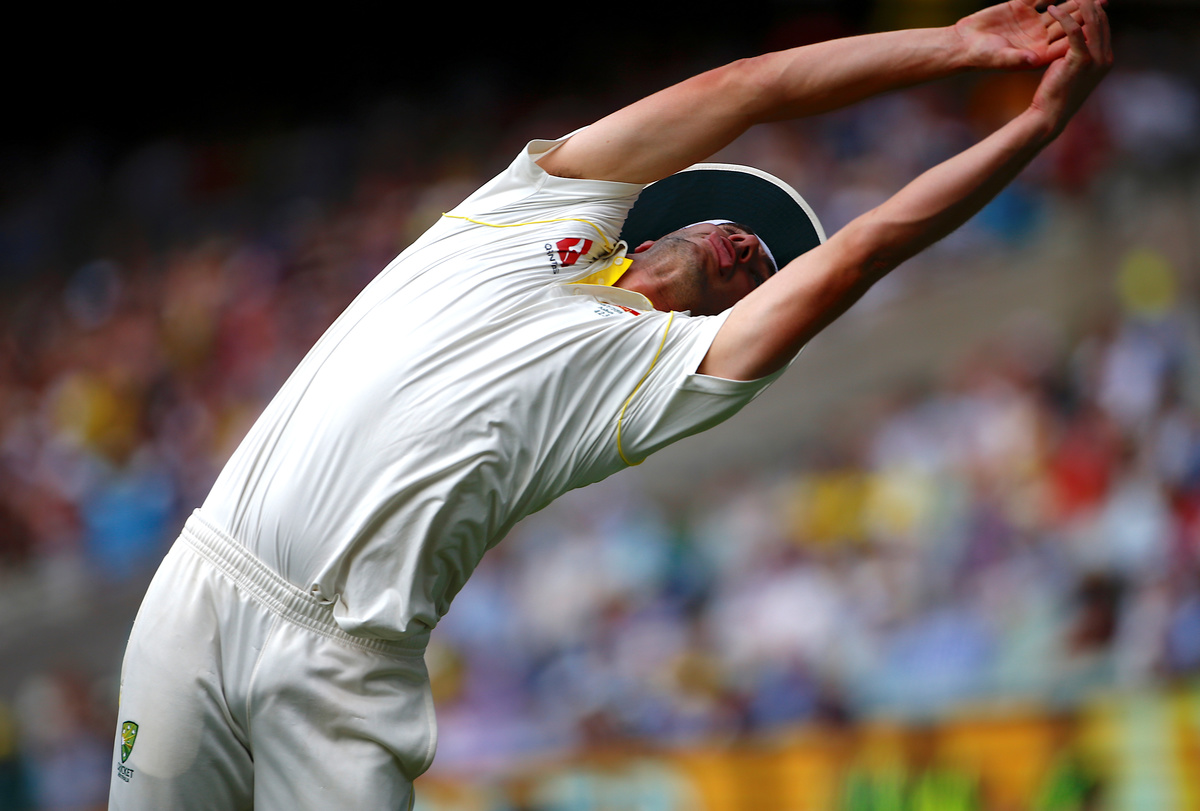 Cricket - Ashes test match - Australia v England - MCG, Melbourne, Australia, December 28, 2017. Australia's Pat Cummins stretches and fails to take a catch during the third day of the fourth Ashes cricket test match. REUTERS/David Gray