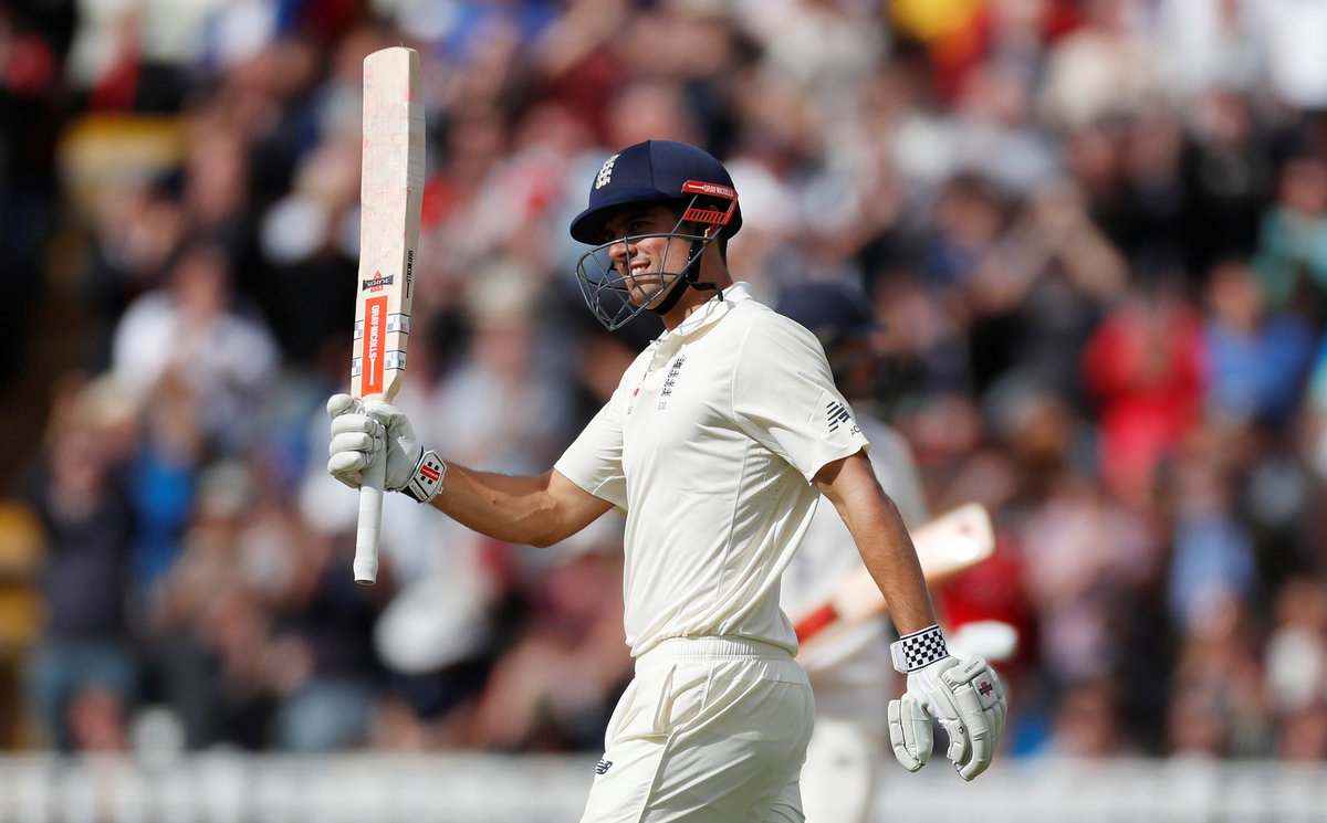 Cricket - England vs West Indies - First Test - Birmingham, Britain - August 18, 2017 England's Alastair Cook celebrates his double century Action Images via Reuters/Paul ChildsCricket - England vs West Indies - First Test - Birmingham, Britain - August 18, 2017 England's Dawid Malan and Alastair Cook (R) Action Images via Reuters/Paul ChildsEngland's Alastair Cook in action Action Images via Reuters/Paul ChildsCricket - England vs West Indies - First Test - Birmingham, Britain - August 18, 2017 England's Alastair Cook in action Action Images via Reuters/Paul ChildsCricket - England vs West Indies - First Test - Birmingham, Britain - August 18, 2017 England's Alastair Cook celebrates his double century Action Images via Reuters/Paul ChildsCricket - England vs West Indies - First Test - Birmingham, Britain - August 18, 2017 Fans in fancy dress during the match Action Images via Reuters/Paul ChildsCricket - England vs West Indies - First Test - Birmingham, Britain - August 18, 2017 West Indies' Roston Chase celebrates taking the wicket of England's Dawid Malan Action Images via Reuters/Paul ChildsCricket - England vs West Indies - First Test - Birmingham, Britain - August 18, 2017 West Indies' Kemar Roach appeals for a wicket Action Images via Reuters/Paul Childs
