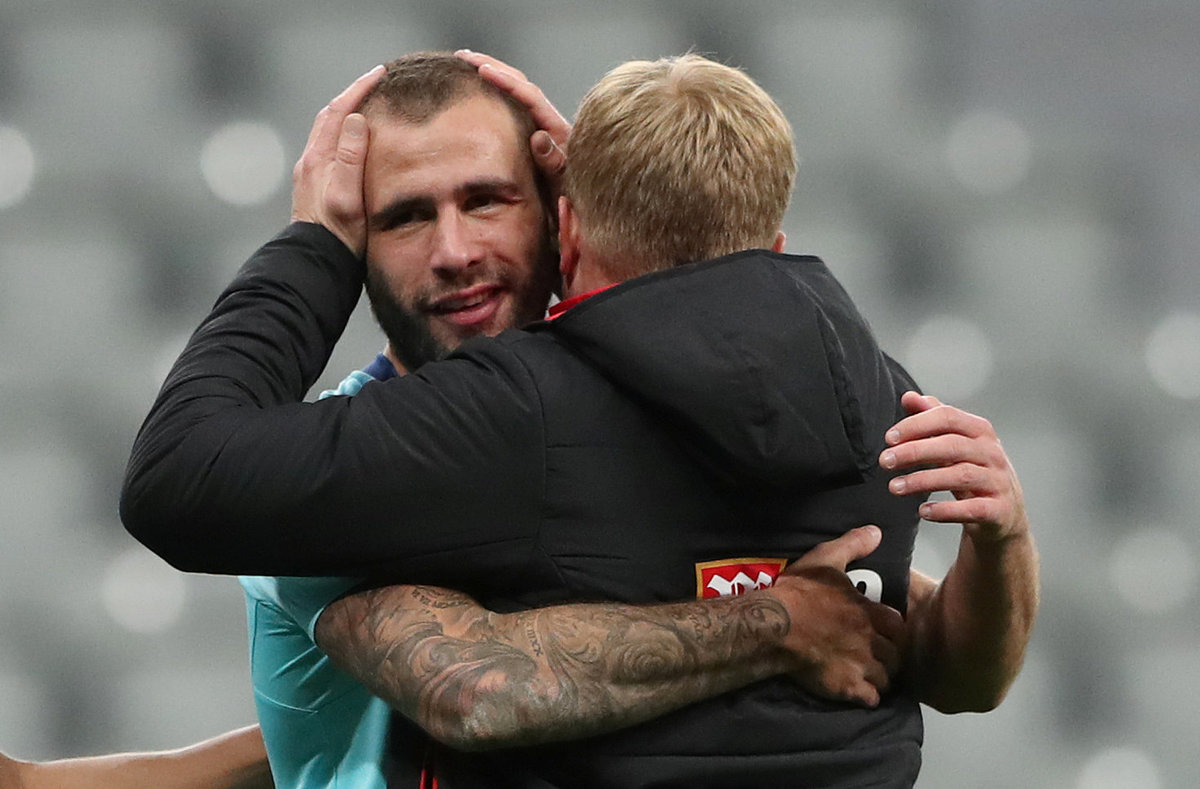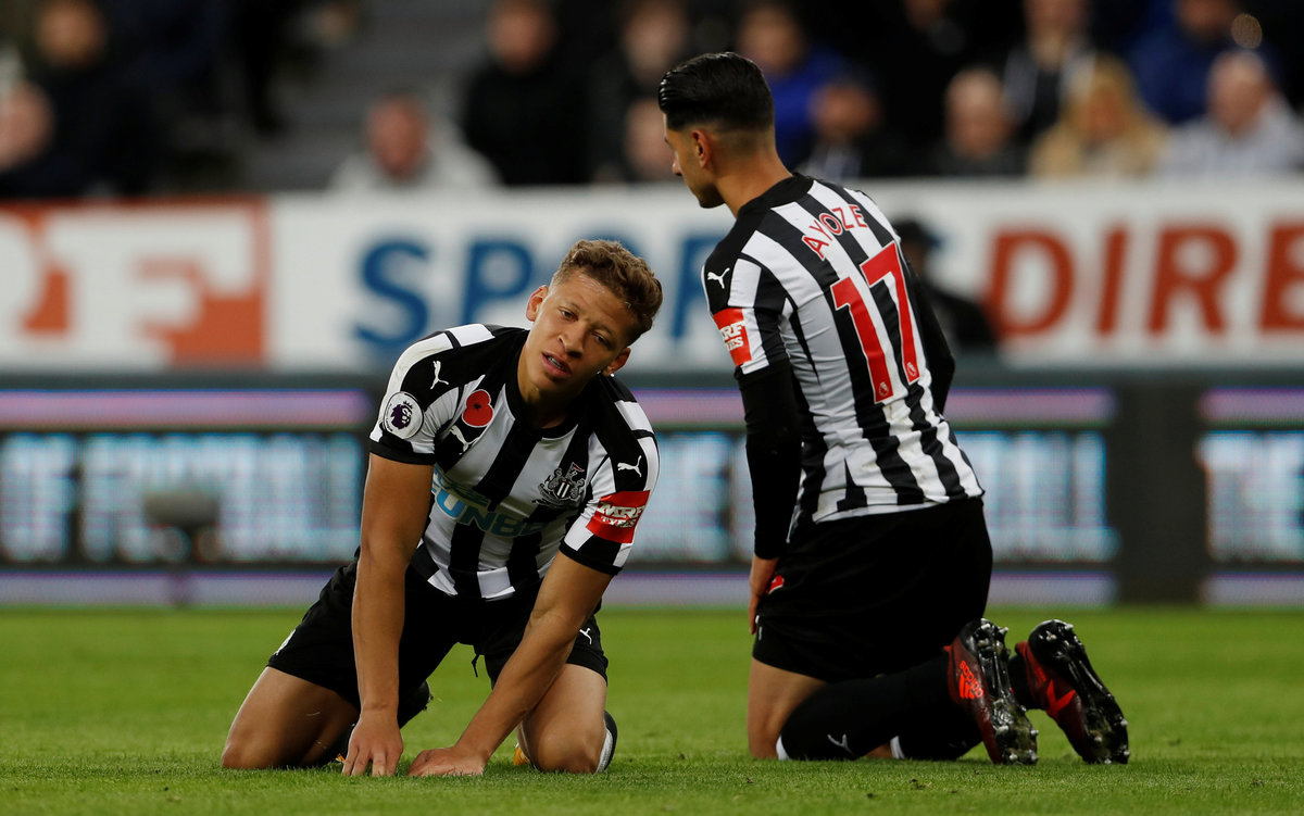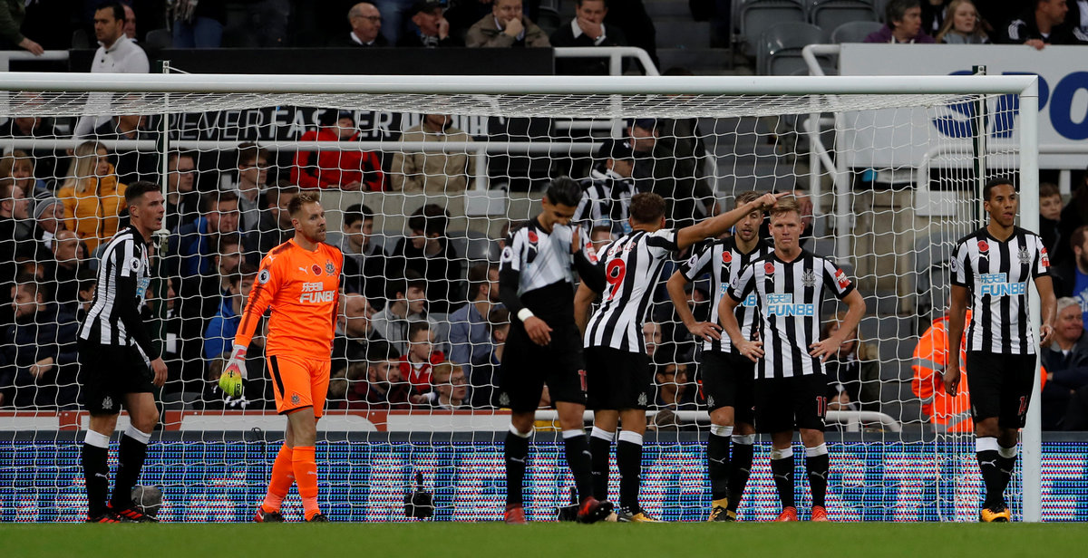 Soccer Football - Premier League - Newcastle United vs AFC Bournemouth - St James' Park, Newcastle, Britain - November 4, 2017 Newcastle United players look dejected after conceding a goal. Action Images via Reuters/Lee Smith Soccer Football - Premier League - Newcastle United vs AFC Bournemouth - St James' Park, Newcastle, Britain - November 4, 2017 Bournemouth's Steve Cook scores their first goal Action Images via Reuters/Lee Smith Soccer Football - Premier League - Newcastle United vs AFC Bournemouth - St James' Park, Newcastle, Britain - November 4, 2017 Bournemouth manager Eddie Howe and Steve Cook celebrate after the match REUTERS/Scott Heppell Soccer Football - Premier League - Newcastle United vs AFC Bournemouth - St James' Park, Newcastle, Britain - November 4, 2017 Newcastle United's Dwight Gayle and Ayoze Perez look dejected. Action Images via Reuters/Lee Smith Soccer Football - Premier League - Newcastle United vs AFC Bournemouth - St James' Park, Newcastle, Britain - November 4, 2017 Newcastle United's Robert Elliot makes a save. Action Images via Reuters/Lee Smith Soccer Football - Premier League - Newcastle United vs AFC Bournemouth - St James' Park, Newcastle, Britain - November 4, 2017 Newcastle United manager Rafael Benitez and Bournemouth manager Eddie Howe. Action Images via Reuters/Lee Smith