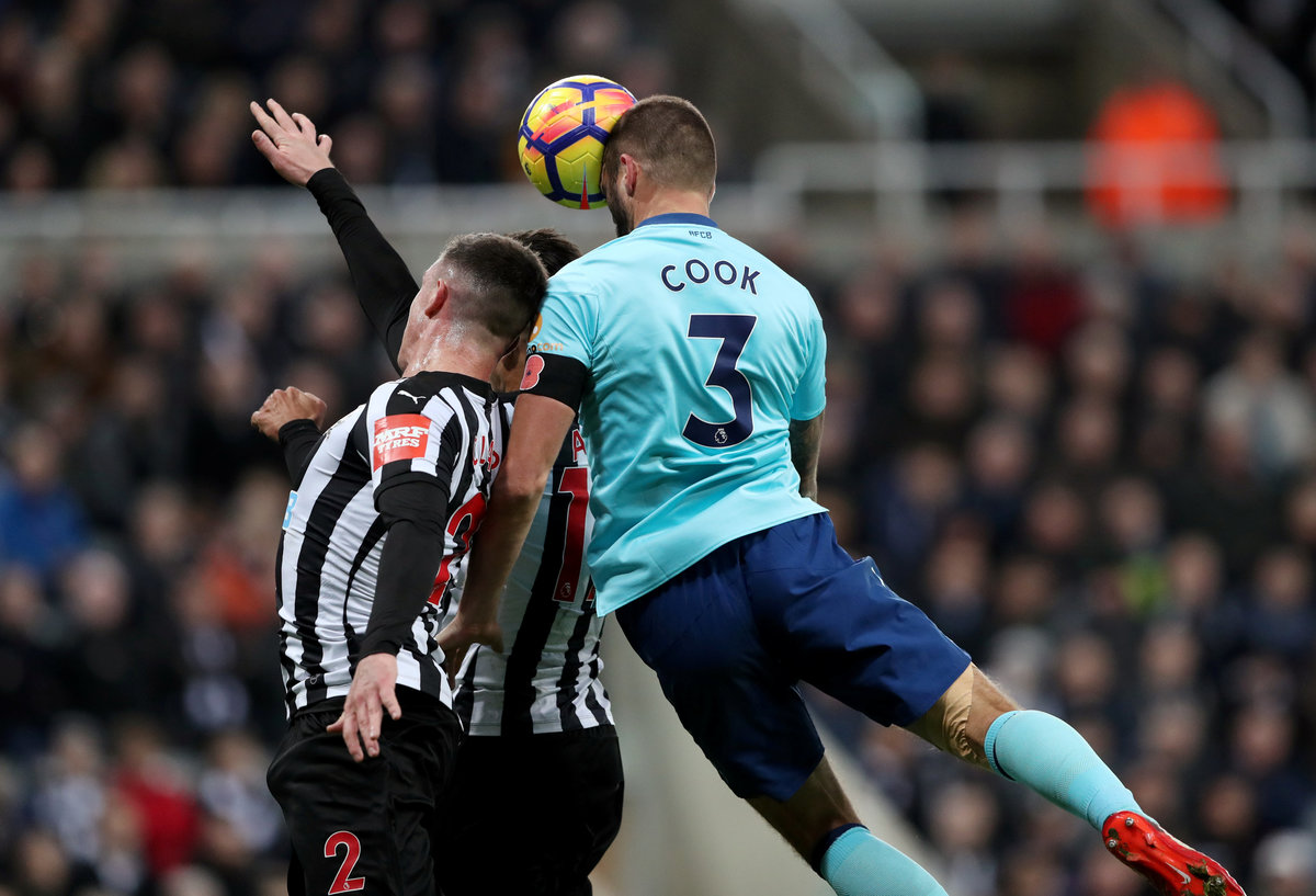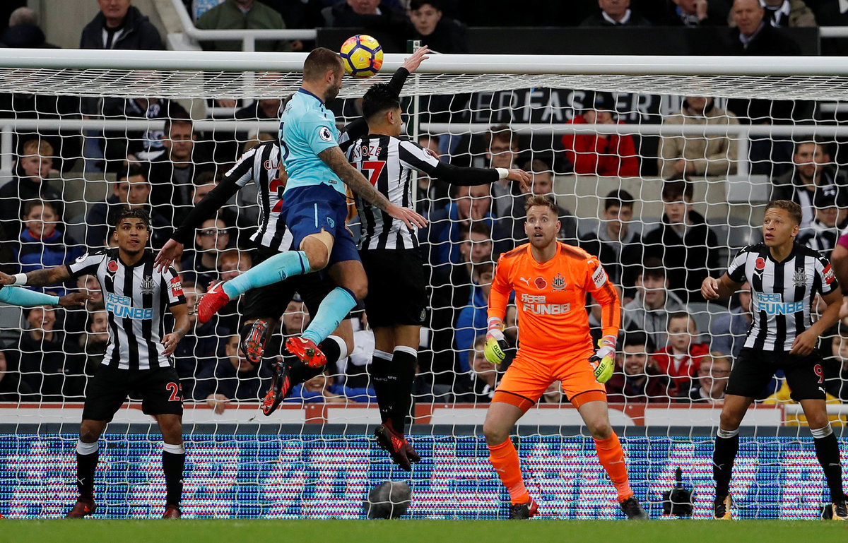 Soccer Football - Premier League - Newcastle United vs AFC Bournemouth - St James' Park, Newcastle, Britain - November 4, 2017 Bournemouth's Steve Cook scores their first goal. REUTERS/Scott Heppell