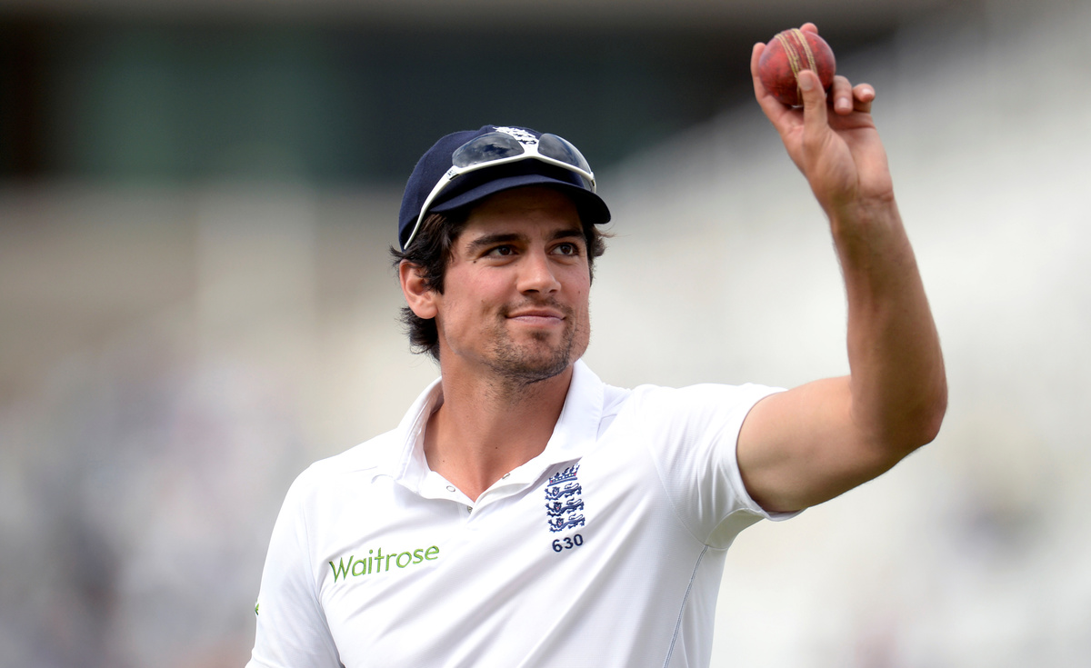 FILE PHOTO: England's captain Alastair Cook holds up the ball after the first cricket test match against India finished in a draw at Trent Bridge cricket ground in Nottingham, England July 13, 2014. REUTERS/Philip Brown/File Photo