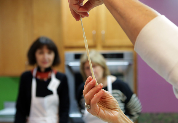For Helena Docherty, the class was the 40th she had attended, all at Kitchen Conservatory, in a year and a half. She has been trying a wide variety of cuisines (she enjoys French the most, because it is the foundation for all European cooking), and has been baking as well as cooking.