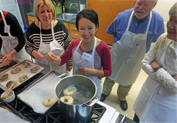 Perhaps the most hands-on of the classes I took was at Kitchen Conservatory, making bagels and bialys. Margi Kahn, the school's doyenne of dough, led the class through the ins and outs of making the traditionally Jewish delicacies.