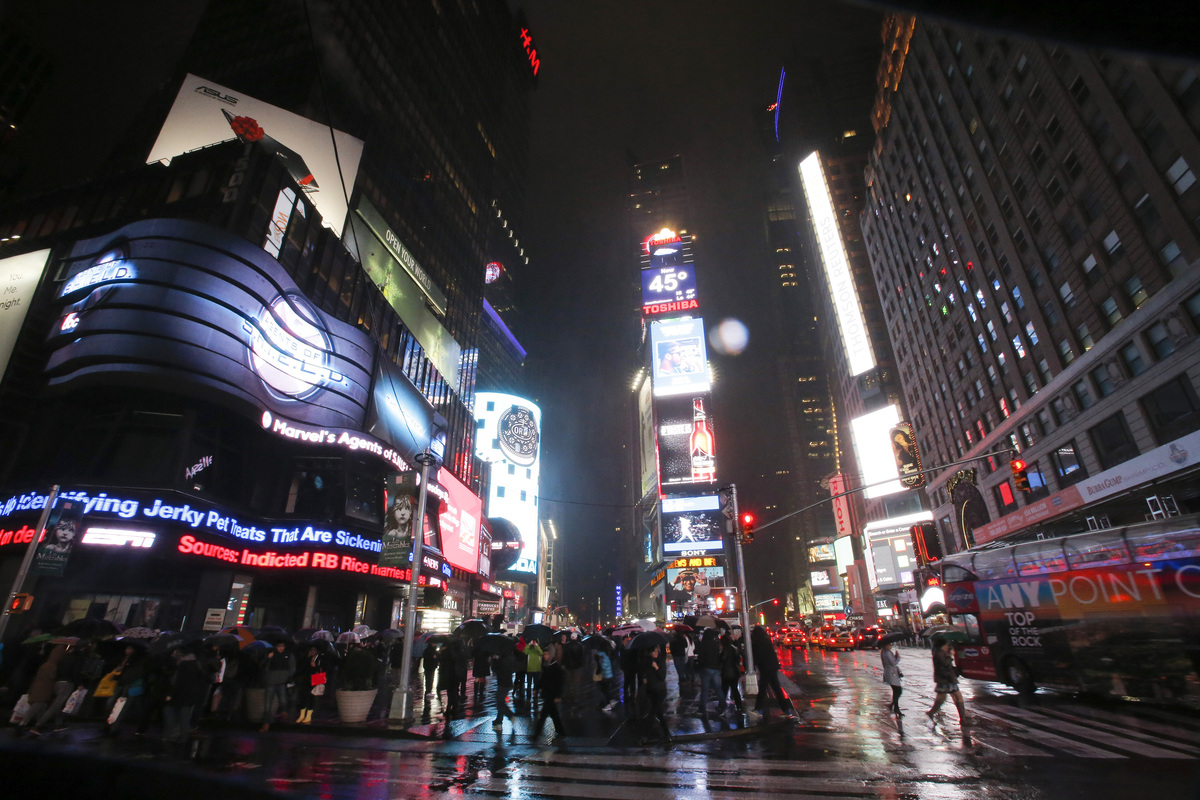 More than 350,000 people visit Times Square in midtown Manhattan, known as "The Crossroads of the World," every day.