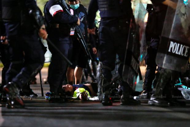 More clips showed another man wearing what appeared to be a green volunteer medic's vest surrounded by police leading to the hashtag #policebeatingmedic trending on Thai language Twitter.