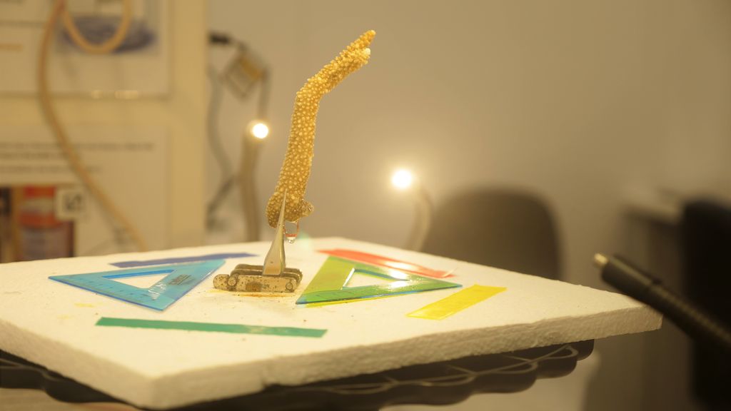 In other tanks, she characterises the current bleaching events happening in the Great Barrier Reef.
