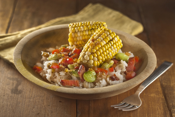Corn and bacon succotash with rice