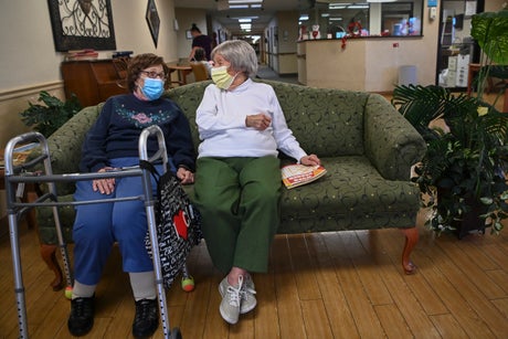 “We look after each other in here. We take care of each other,” resident Susan McEachern said Wednesday as she and a friend — both wearing masks — sat in a communal room that was recently reopened because many residents had been vaccinated.