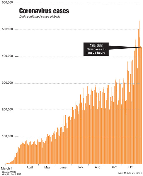 By Oct. 29, more than 853,000 children had tested positive for COVID-19 since the onset of the pandemic, the academy said. This included nearly 200,000 new cases in children during October alone — 61,000 of them during the last week of that month, larger than any previous week during the eight-month pandemic.