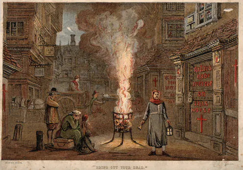 His narrator, identified only as HF, is fascinated by what happened after the lord mayor ordered victims to be locked in their homes. Watchmen were posted outside front doors. They could be sent on errands to fetch food or medicine and took the keys with them, so people contrived to get more keys cut. Some watchmen were bribed, assaulted or murdered. Defoe describes one who was “blown up” with gunpowder.
